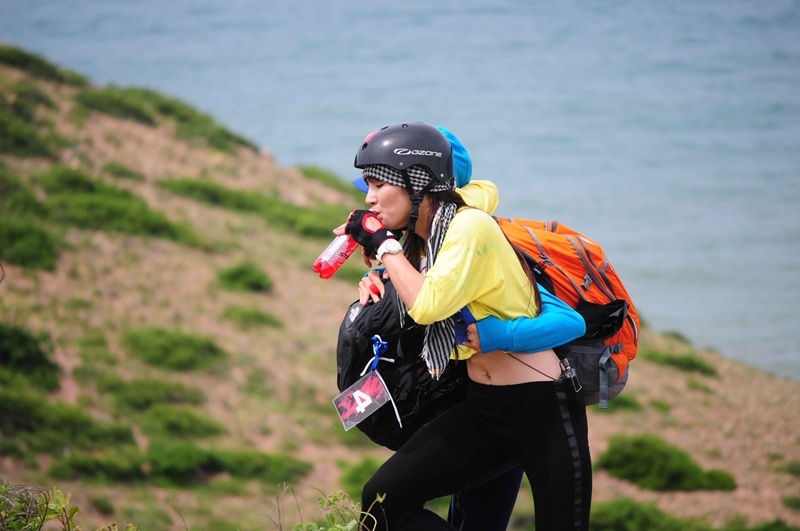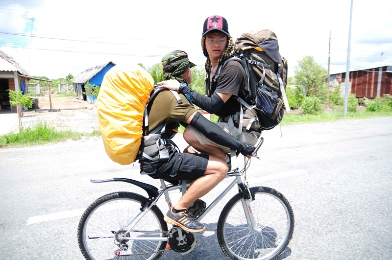 Anh và bạn đồng hành cũng gây choáng cho khán giả và các tay đua khác với 2 chiếc ba lô to kềnh nặng gần 20 kg.