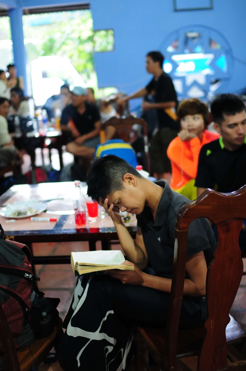 Chiến binh đội Đỏ đọc sách mọi lúc mọi nơi.