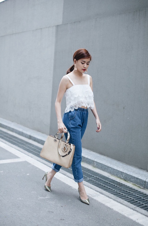 | Sở hữu vóc dáng nhỏ nhắn nhưng có vòng ba rất hấp dẫn, vì thế street style của Hoàng Thùy Linh không thể thiếu những mẫu quần jeans trẻ trung. Ảnh: Tiên Nguyễn, Minh Luân |