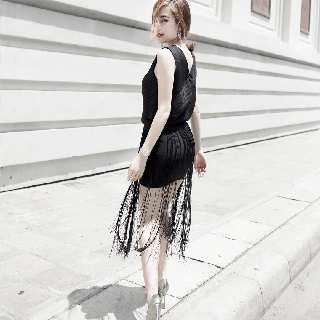 | Ngoài tông màu đỏ trên sàn diễn, cô còn là fan của màu đen với thời trang đường phố. Ảnh: Tiên Nguyễn, Minh Luân |