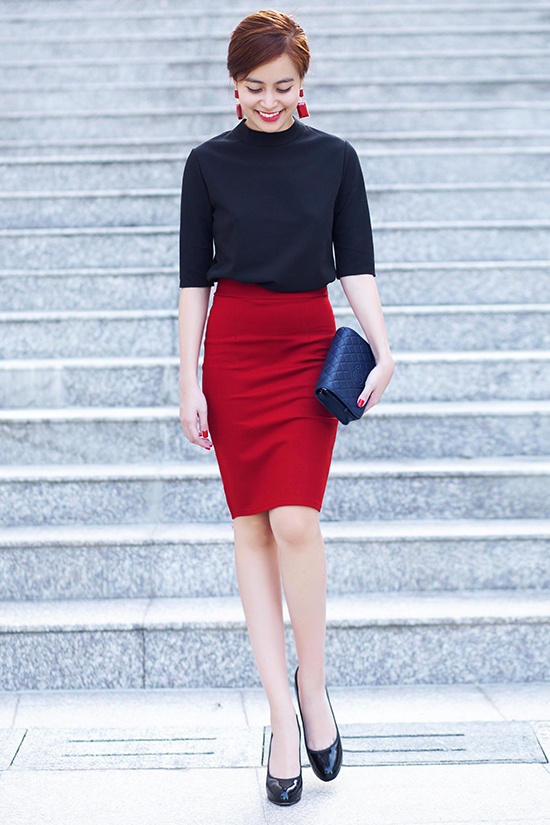 | Cách kết hợp màu hết sức ăn ý giúp người đẹp ghi điểm khi xuống phố với váy bút chì. Ảnh: Thảo Trang |