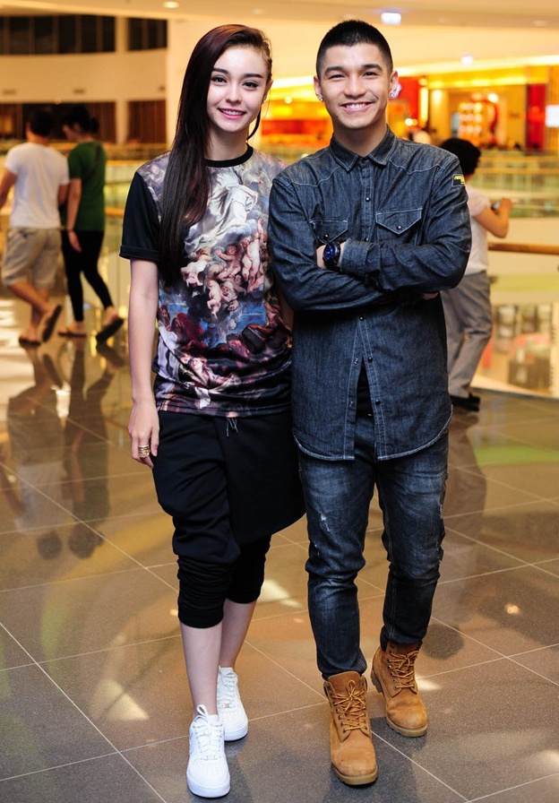 Giọng ca "Beautiful Girl" sở hữu phong cách thời trang cá tính, trong khi đó, bạn gái "bông hồng lai" cũng không kém phần phá cách với những kiểu mốt hợp xu hướng.