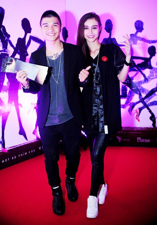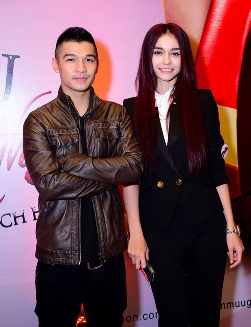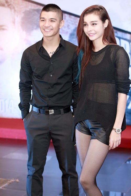 | Tông màu đen và chất liệu da được cả hai yêu thích và sử dụng khá thành thạo. Cách mix trang phục cá tính giúp cặp đôi 9X thể hiện phong cách khi tham sự buổi ra mắt phim tại Sài thành. |