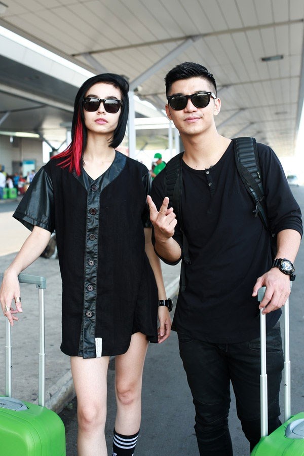 | Thời trang sân bay và vali hành lý của bộ đôi cũng đồng tông màu. |