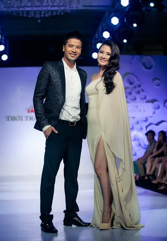 | Cặp vợ chồng sắp cưới thời điểm đó kết hợp ăn ý khi cùng thể hiện bộ sưu tập mới. Trước khi đến với nghiệp diễn, Thanh Tài từng làm người mẫu nên không hề xa lạ với sàn catwalk. |