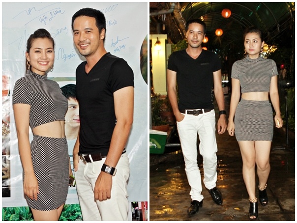 | Khi đồng hành tại các sự kiện giải trí, Ngọc Lan và bạn trai thường chọn trang phục đồng nhất về kiểu dáng và tông màu. Tại một sự kiện diễn ra vào tháng 5/2014, nữ diễn viên chọn bộ trang phục crop-top khỏe khoắn, khoe vòng eo thon gọn. Thanh Tài chọn áo thun, quần jeans trắng đơn giản. Hình ảnh thể hiện sự ăn ý giúp họ ghi điểm cộng về gu thẩm mỹ. |