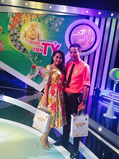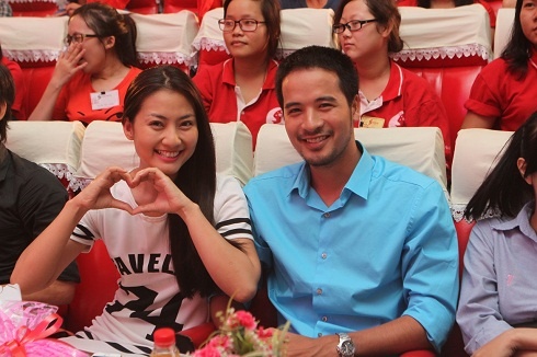 | Bộ đôi diễn viên cùng tham dự một sự kiện từ thiện. Thanh Tài nổi bật hơn bạn gái khi diện áo sơ-mi màu xanh nước biển, còn nữ diễn viên Âm tính đơn giản trong mẫu áo thun trắng in chữ số năng động. |
