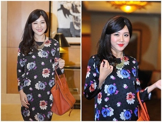 | Bộ váy của Văn Mai Hương có màu sắc và kiểu dáng lỗi thời. Nó khiến cô già thêm chục tuổi. |