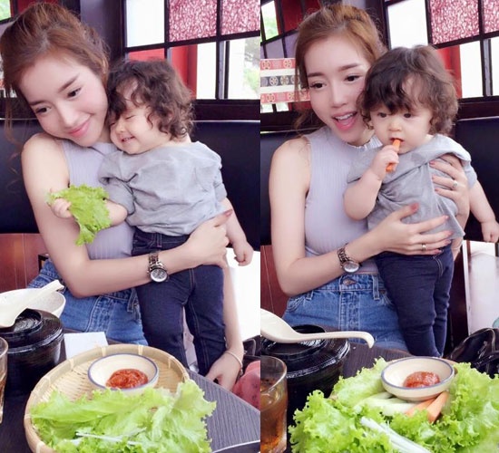 | Sự tương đồng về màu sắc được Elly chú ý mỗi khi hai mẹ con ra ngoài đi ăn. |
