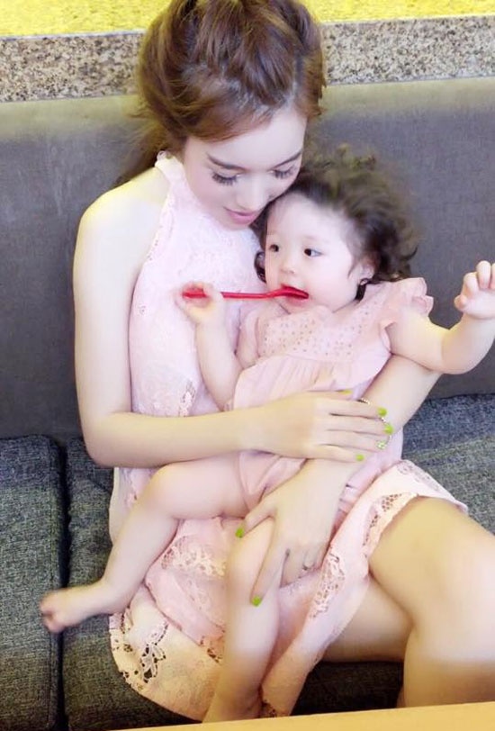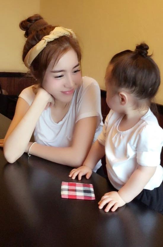 | Kiểu tóc búi tỏi cao gọn gàng giống nhau cũng được bà mẹ trẻ dành thời gian làm dáng cho con gái. |