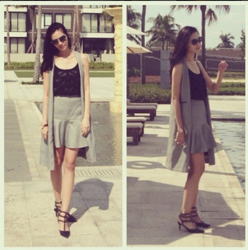 | Người đẹp gây ấn tượng với cách phối đồ layer rất sành điệu. |