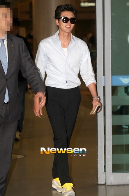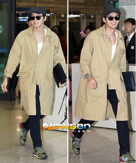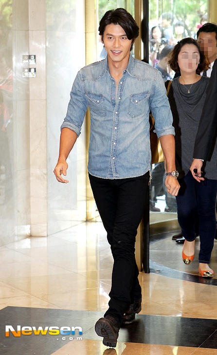 | Hyun Bin là một người không cầu kỳ trong trang phục. Tuy nhiên, biết kết hợp những thứ đơn giản với nhau luôn giúp chàng tài tử điển trai nổi bật ở bất kỳ nơi đâu xuất hiện. Chiếc áo jeans xắn tay cùng đôi giày "hầm hố" đem lại vẻ mạnh mẽ, nam tính cho Hyun Bin. |
