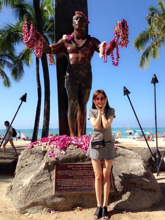 Nhìn cô giống một sinh viên hơn là một hoa hậu khi xuất hiện trên đường phố.