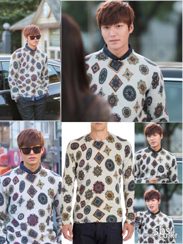 | Lee Min Ho đã tăng cân khi tham gia The Heirs, thêm vào đó nam diễn viên 26 tuổi không có cơ bắp săn chắc cuồn cuộn nên việc mặc những chiếc áo sweater họa tiết hoa văn cổ điển vintage bản to này sẽ khiến thân hình Lee Min Ho thêm phần đẫy đà, đặc biệt khi anh mặc với sơ mi bên trong. |