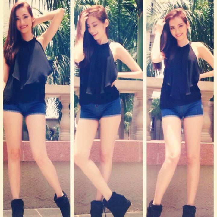 Quần shorts và giày độn là món đồ thời trang mà Trúc Diễm thường dùng khi dạo phố.