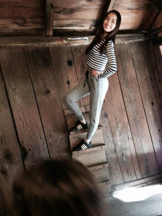 Nữ người mẫu - diễn viên luôn giữ phong cách trẻ trung và gu ăn mặc hết sức cute.