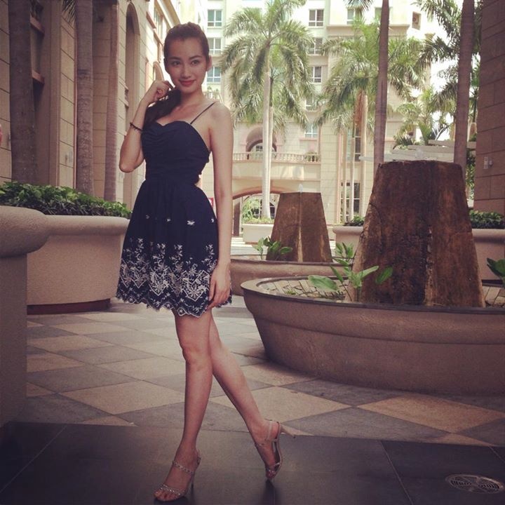 Những mẫu đầm liền có độ dài ngang đùi cũng được Trúc Diễm ưa chuộng.