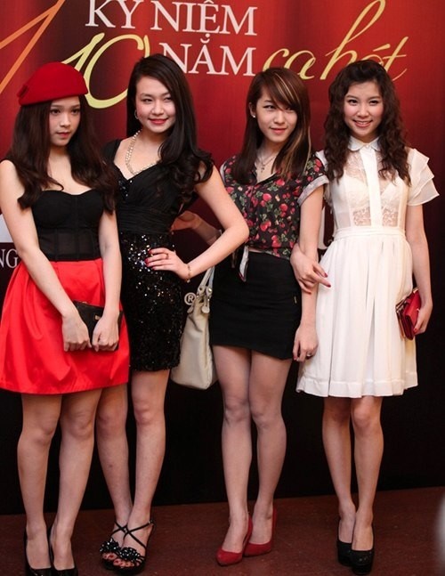 | Trong liveshow Ngày về ở Hà Nội của Tuấn Hưng, cô nàng khá chững chạc khi diện sequin đen lấp lánh so với 3 cô bạn thân là Huyền Baby, Emily và Hạnh Sino. Tuy nhiên, gam màu đen và đầm ôm bó sát eo đã giúp cô che đi khuyết điểm với thân hình đẫy đà của mình. |