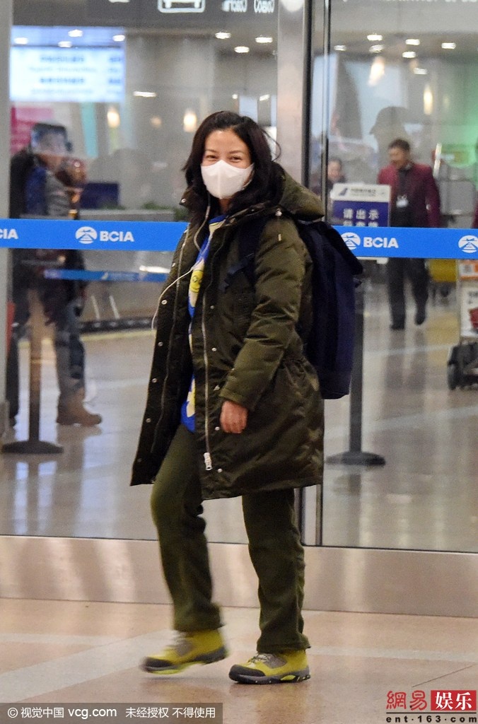 | Theo Nam Đô, tối 28/12, Triệu Vy gây bất ngờ xuất hiện tại sân bay thủ đô Bắc Kinh (Trung Quốc) trong bộ trang phục cồng kềnh. Cô đeo khẩu trang, tóc để rối, khoác áo phao to phối giày và quần cùng tông xanh. Rất hiếm người nhận ra đây là nữ diễn viên nổi tiếng. |