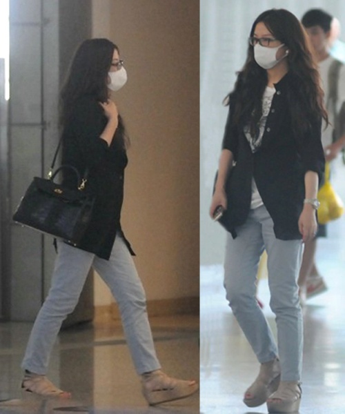 | Triệu Vy chưa bao giờ chỉn chu với gu thời trang tại sân bay. Trước đó, cô từng bị chê béo và xuống sắc khi mặc áo khoác đen, quần tối màu, đeo khẩu trang kín mít. |
