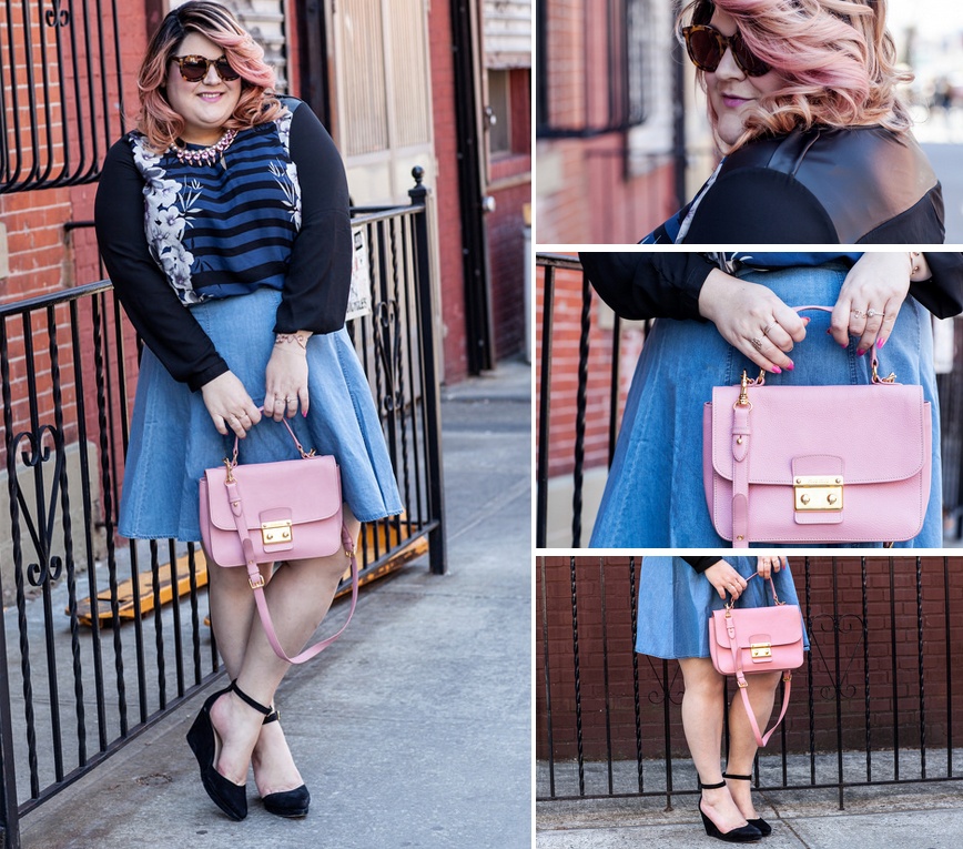 Gu thời trang ngọt ngào của cô với điểm nhấn là chiếc túi hồng nữ tính. |