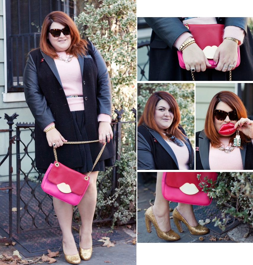 Hoặc có khi lại nổi loạn cùng áo da nhưng vẫn giữ nét điệu đà cùng chiếc clutch độc đáo. |