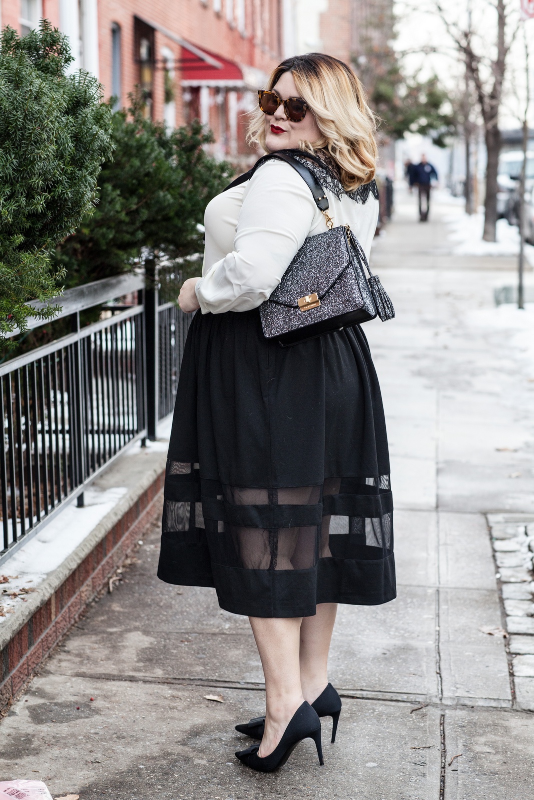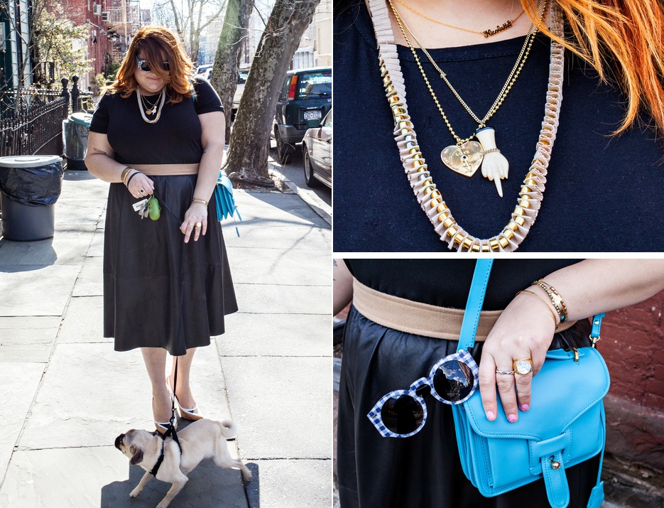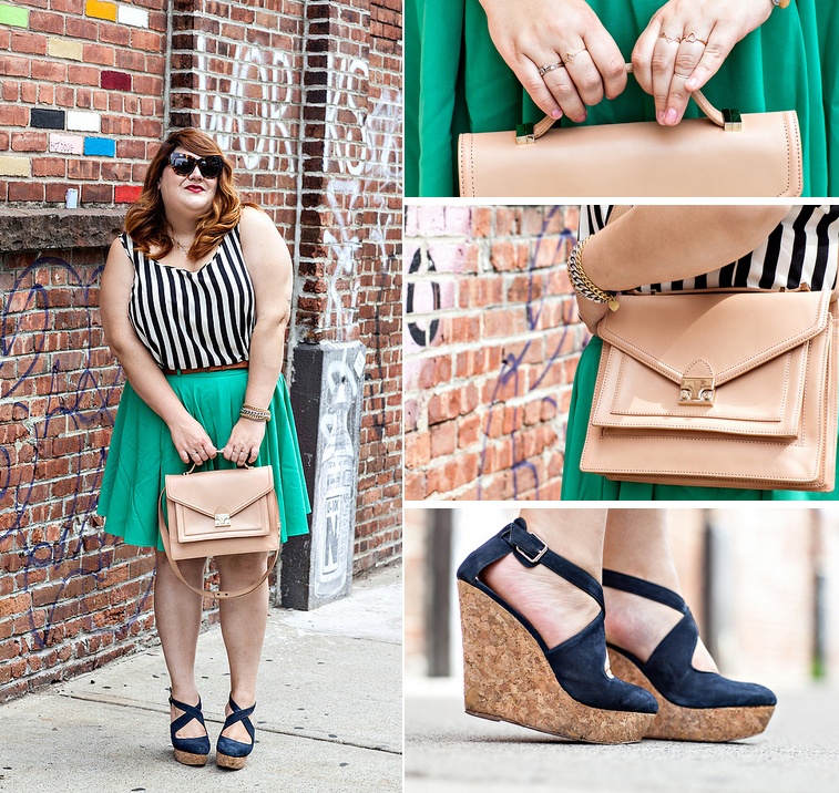 Chỉ cần bộ giày và túi độc đáo đã giúp cô tạo nên sự khác biệt cho bộ đôi sơ mi - váy xòe. |