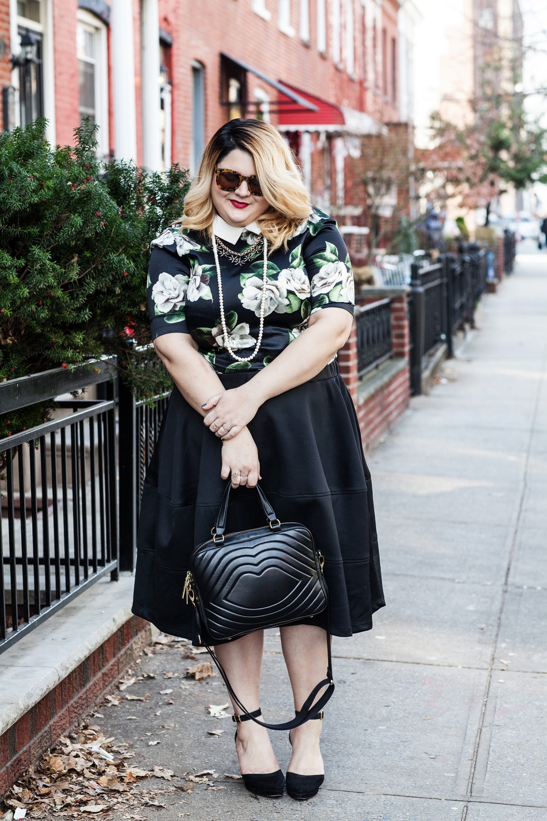 Xinh đẹp như một quý cô với váy midi và áo hoa văn điệu đà khi xuống phố. |