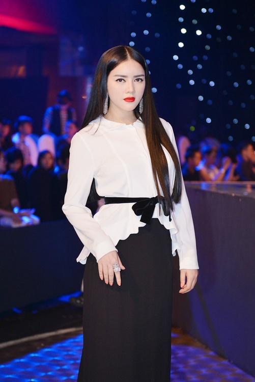 | Trong một sự kiện xã hội khác, Lý Nhã Kỳ làm xấu hình ảnh trang phục truyền thống bởi cách ăn vận bệ rạc khi không cài cúc áo cẩn thận. |
