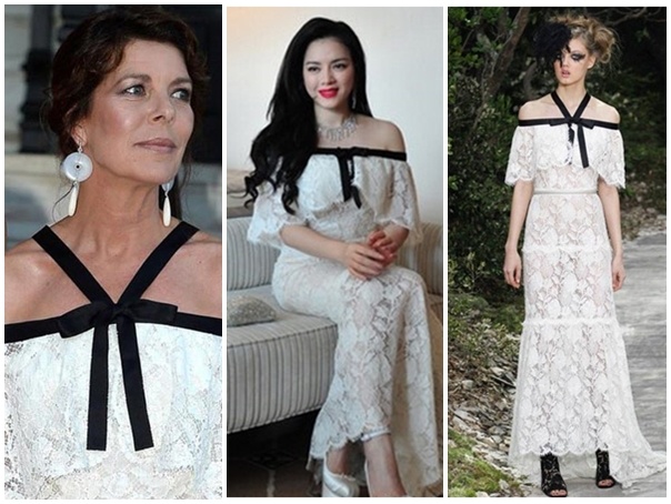 | Phía Lý Nhã Kỳ cho biết, chiếc váy của nhãn Chanel có giá 100.000 USD (hơn 2 tỷ đồng) mầ cô đang sở hữu là sản phẩm độc quyền. Nhưng người ta lại phát hiện công chúa Monaco diện chiếc váy gần như y chang. Một lần nữa, nhiều cư dân mạng cho rằng, nữ diễn viên đã ''nổ'' về váy áo của mình. |