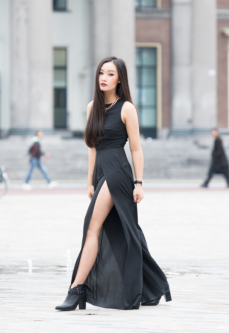 | Quần xẻ cao mix kèm bốt thấp cổ giúp Lê Vi ghi điểm ở sự độc đáo mà không kém phần nữ tính. |