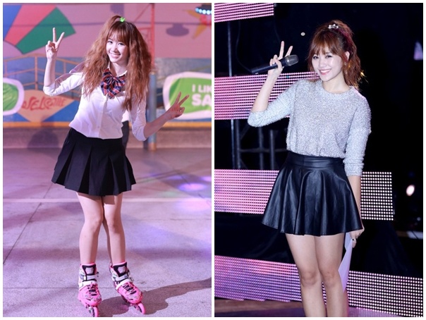 Để giữ hình ảnh đáng yêu, tươi trẻ trong mắt khán giả, nữ ca sĩ sinh năm 1984 thường diện váy ngắn, quần shorts, thiết kế màu trơn tối giản.