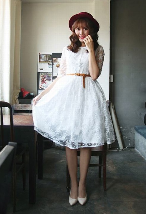 | Váy nữ tính: Ngoài trang phục năng động, cá tính, người đẹp 31 tuổi còn gắn liền với váy điệu đà, nhẹ nhàng. Trong ảnh, cô diện váy trắng, chất liệu voan lưới mỏng tham dự buổi họp báo của đồng nghiệp. Hari tạo điểm nhấn với giày thể thao năng động. |
