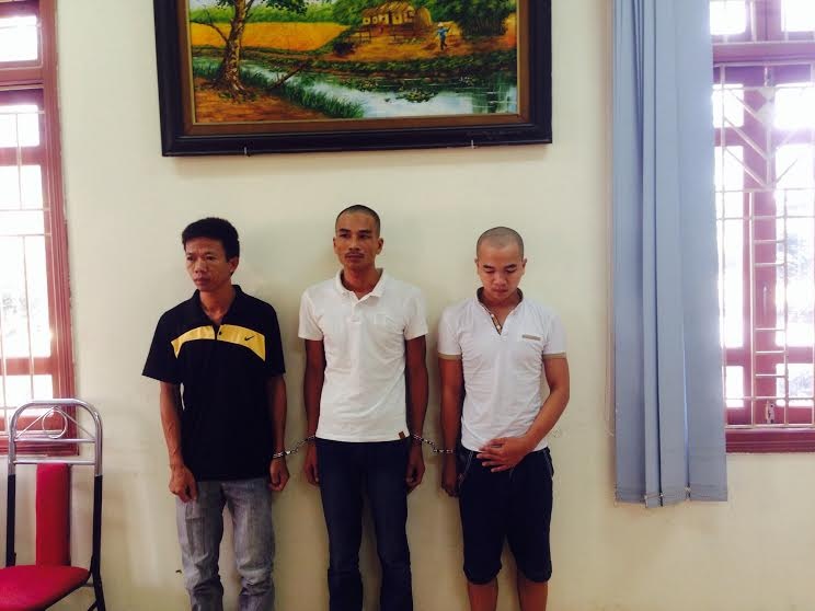 | Hồng, Mỹ, Long tại cơ quan điều tra. |