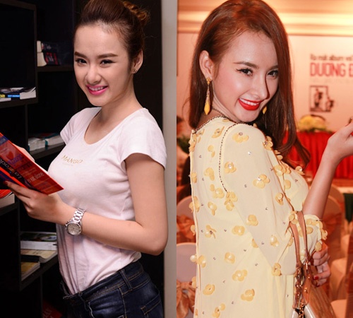 | Không đợi chiếc mũi có thời gian lành lặn trở lại sau phẫu thuật, Angela Phương Trinh đã vội vàng xuất hiện và vô tư chụp hình. Chính vì vậy nên cái mũi mà nhiều người nhận xét là "diều hâu" ấy đã khiến toàn thể gương mặt phù nề, không hài hòa. |