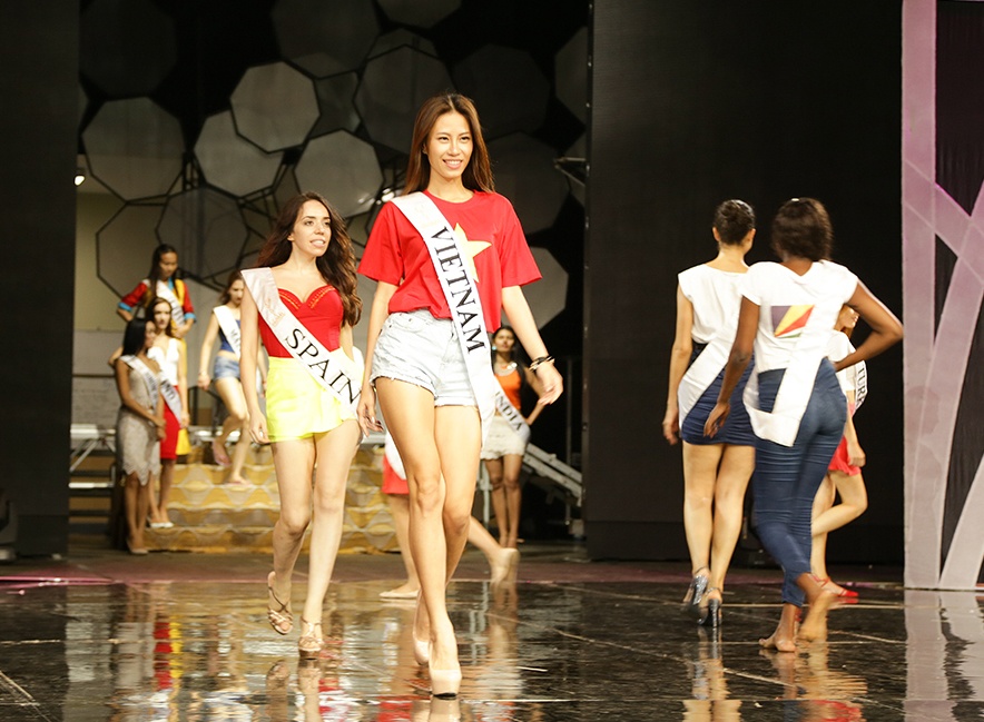 | Thí sinh đại diện Việt Nam nổi bật trong buổi tập luyện. |