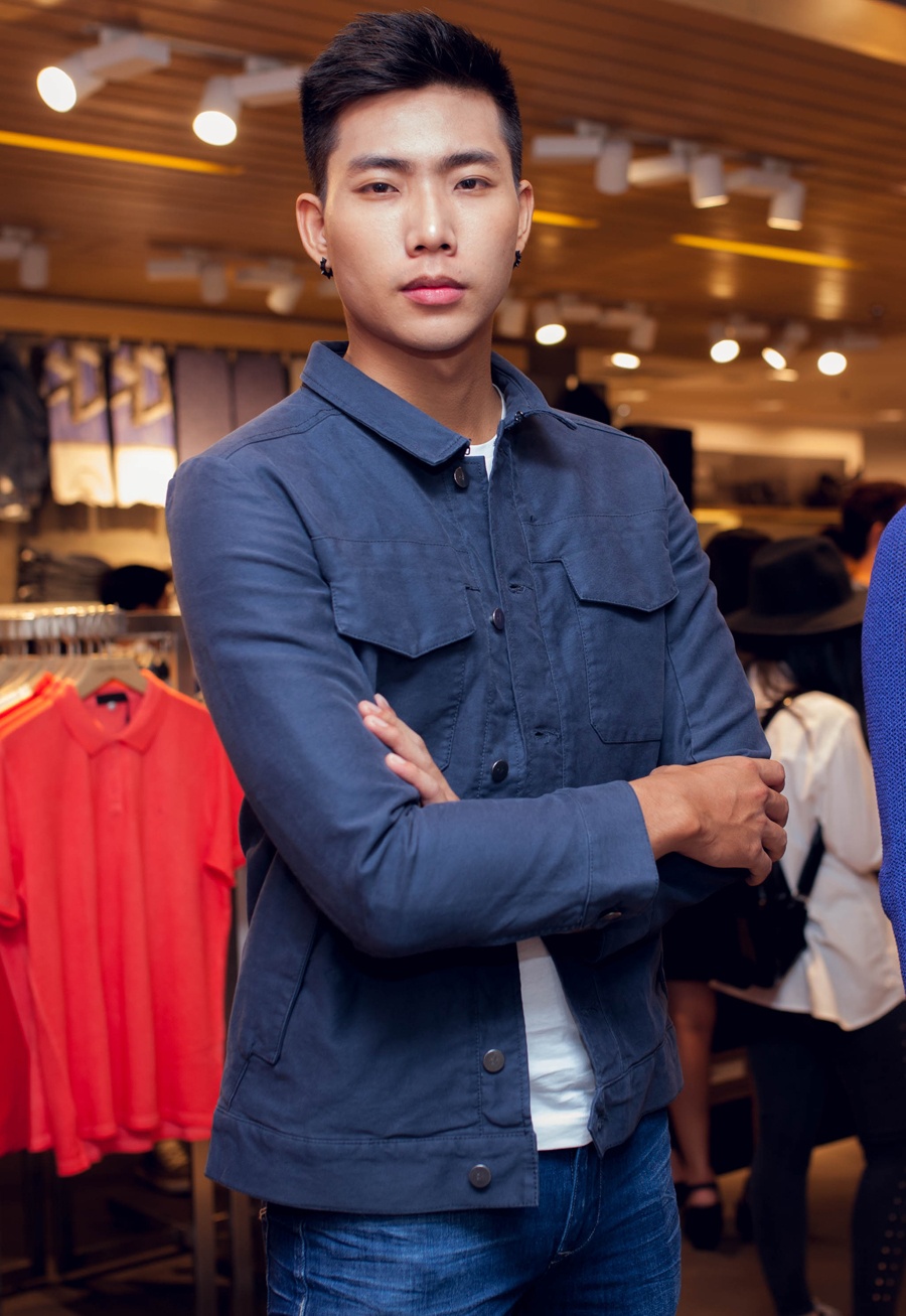 | Ca sĩ Hồ Vĩnh Khoa cũng có mặt ở buổi khai trương. Anh diện trang phục phóng khoáng với jeans và áo thun thoải mái. Khi trình diễn, Hà Anh và Hồ Vĩnh Khoa còn bắt cặp, tạo dáng ăn ý trước ống kính phóng viên. |