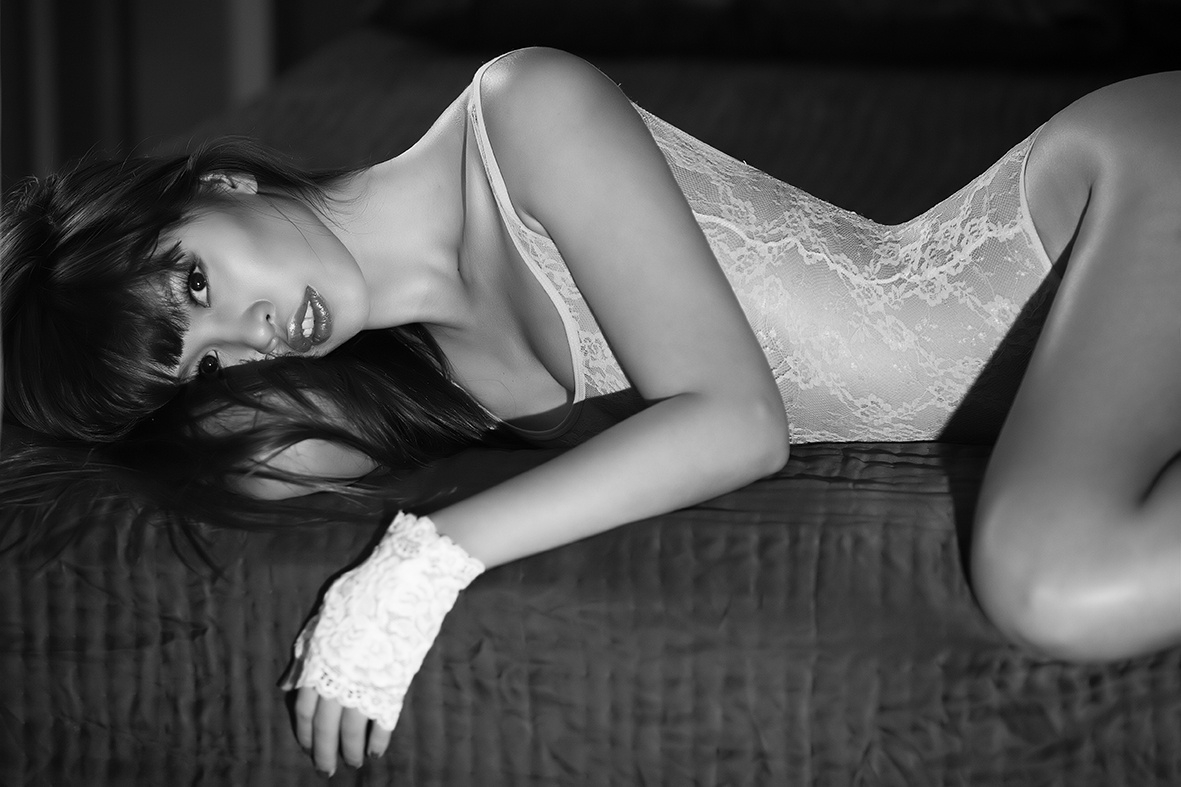 Nữ người mẫu diện trang phục nội y, khéo léo khoe vóc dáng đồng hồ cát với nhiều tư thế tạo dáng đẹp mắt, quyến rũ.