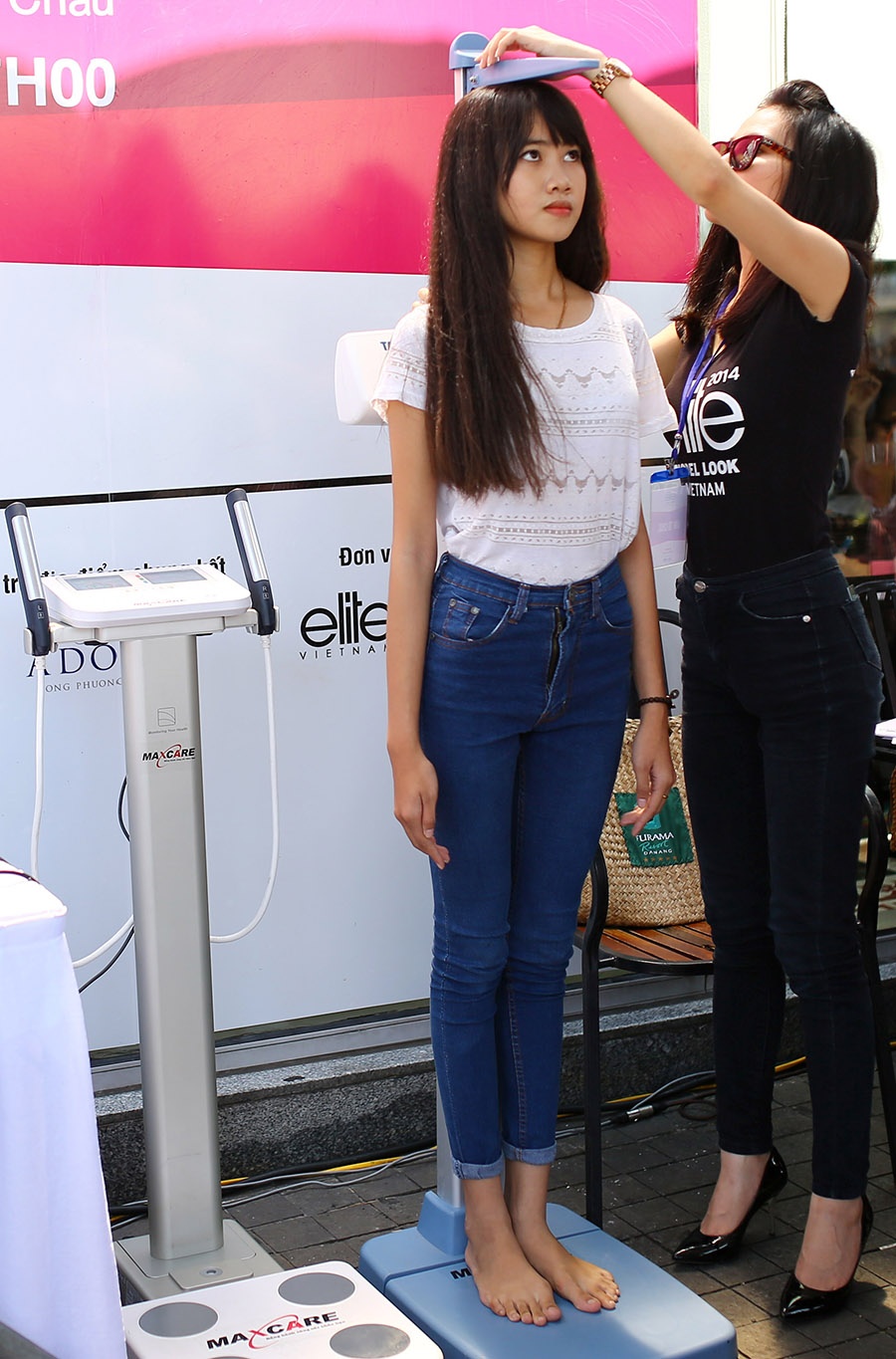Chân dài đình đám làng mốt Việt nổi bật tại buổi casting người mẫu Elite Model Look 2014 nhờ trang phục quyến rũ và phong thái cuốn hút.
