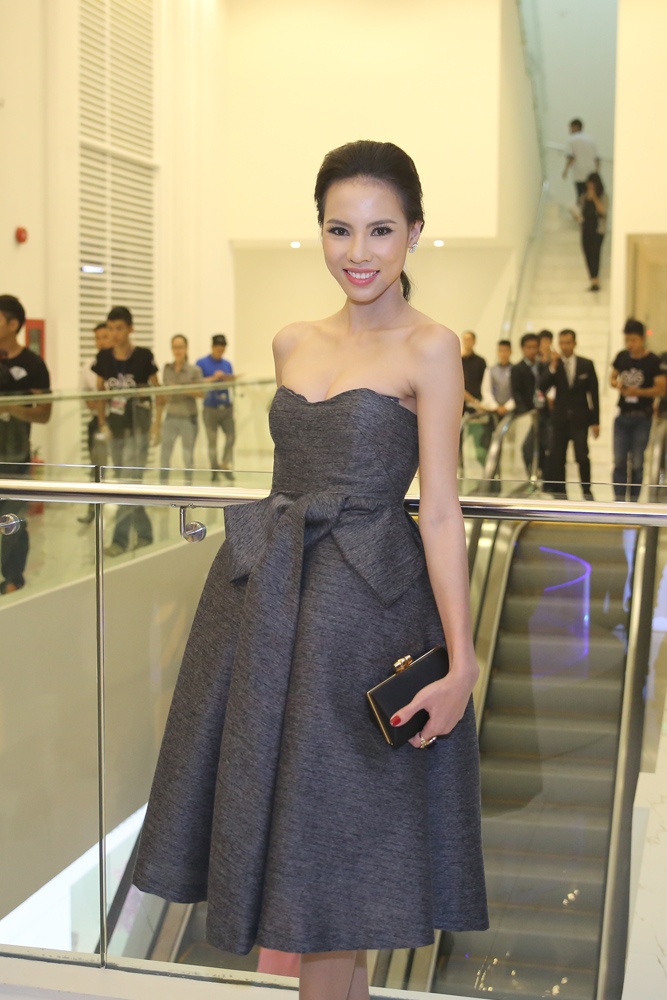 | Võ Hoàng Yến chọn trang phục áo sơ-mi phi bóng và quần âu ôm sát khi đến ủng hộ các thí sinh bước vào đêm thi chung kết. Thời gian này, Hoàng Yến bận rộn với công tác quản lý, đào tạo người mẫu trẻ thuộc công ty quản lý người mẫu do cô thành lập. |