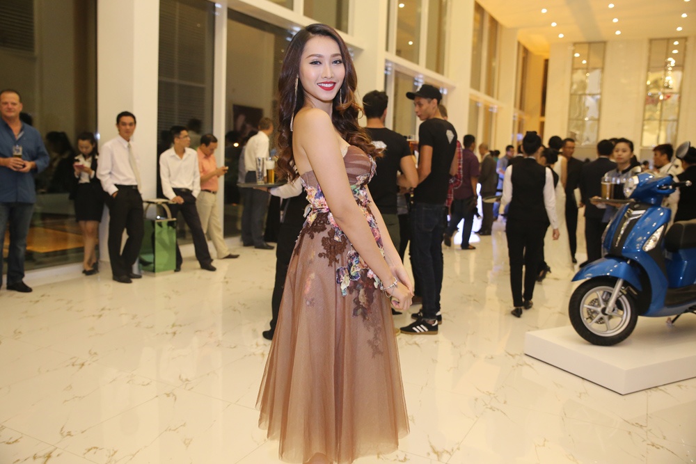 | Trà My Next Top Model chọn phong cách nữ tính với váy hạ eo, đầm xòe nhẹ nhàng. |