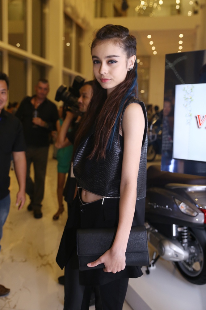 Hot girl M.Lee ăn vận cá tính khi đến tham dự đêm chung kết với tư cách khách mời.