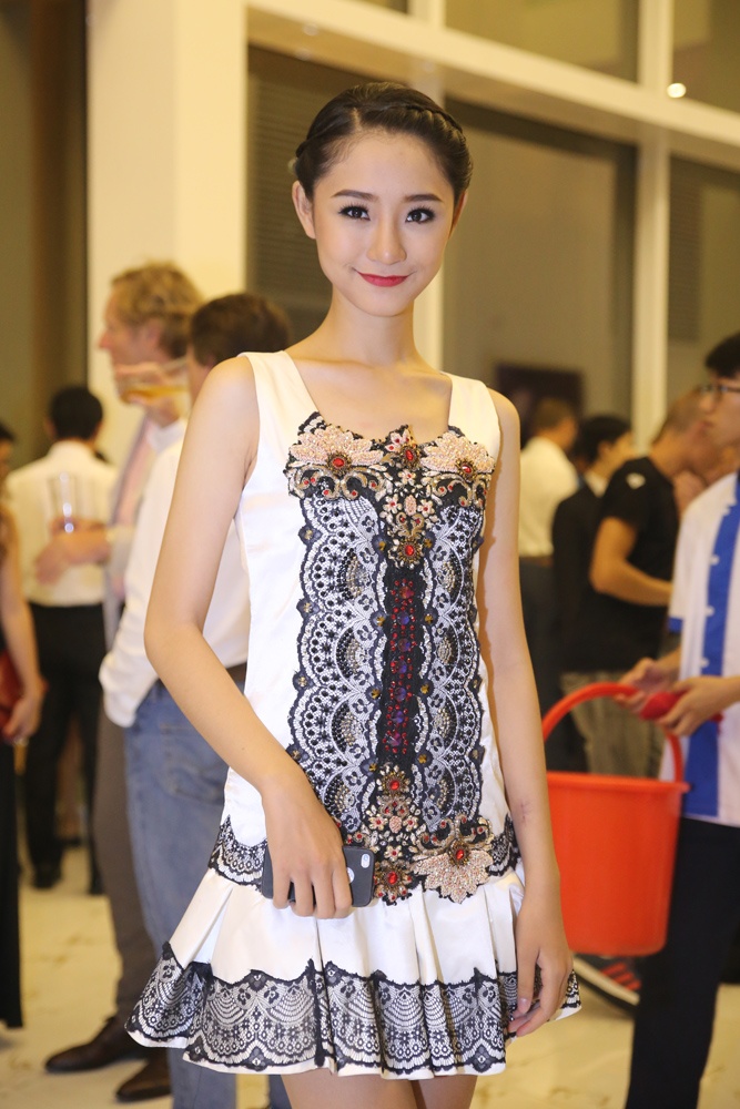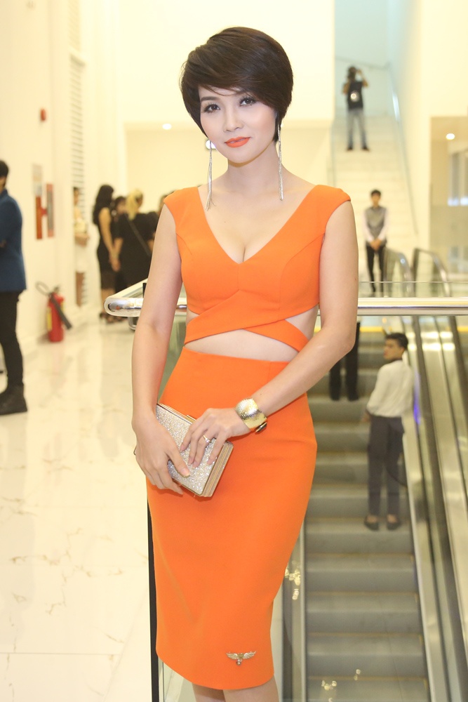 Nữ người mẫu sexy xuất hiện nổi bật trên hàng ghế nóng cuộc thi lần đầu tổ chức tại Việt Nam với mẫu đầm cut-out táo bạo.
