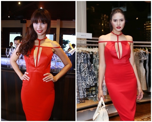 Minh Triệu, Hà Anh, Lê Thị Phương tiết lộ đây là chiếc váy của NTK Kim Khanh, đường cut-out tại thân trên rất hiện đại và quyến rũ, đây là yêu tố này hấp dẫn các người đẹp và chuyện đụng hàng xảy ra cũng là điều không thể tránh khỏi. Việc đụng hàng cũng cho thấy sức ảnh hưởng của các thiết kế cut-out gợi cảm đang được nhiều người đẹp Việt yêu thích.