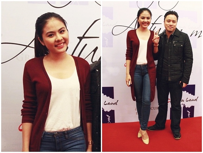 | ''Người đẹp diêm dúa'' Khánh Thi có sự tiến bộ về gu thời trang trong suốt hơn 1 năm trở lại đây. Tuy nhiên, trong một số sự kiện mới diễn ra, người đẹp vô tình để lộ gu thời trang không phù hợp. Áo dáng rộng đi cùng váy bút chì chất liệu jeans là cách phối đã lỗi thời, đi kèm là mái tóc vừa uốn xoăn vừa tết bên thái dương không hòa hợp, phụ kiện cũng không ăn nhập tổng thể. Khánh Thi muốn thể hiện hình ảnh cá tính trên sân khấu nhưng sự thiếu am tường thời trang đã tạo nên một hình ảnh không phù hợp. |