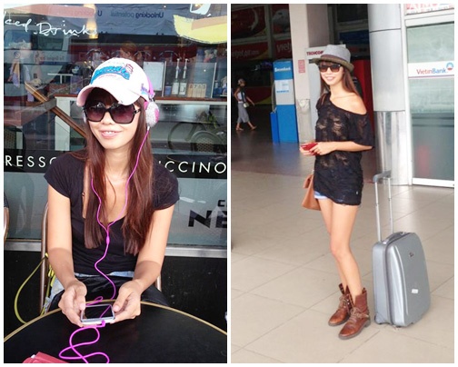 | Áo trễ vai tông màu đen kỳ bí và lôi cuốn, Hà Anh thường chọn phong cách khỏe khoắn khi đến sân bay. |