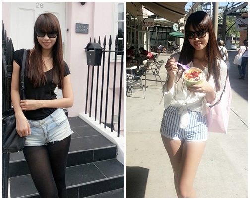| Khoe đôi chân thon dài bằng quần short ngắn. |