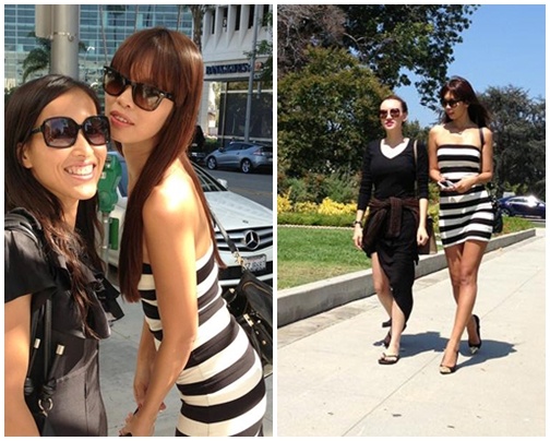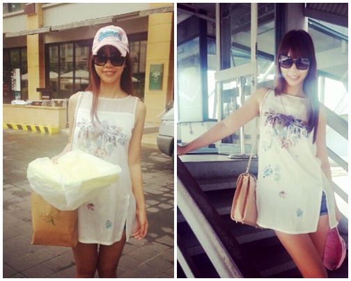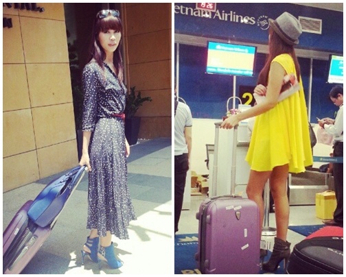 Với trang phục sân bay, cô thường chọn kiểu khoe chân hoặc cổ áo chữ V sâu.