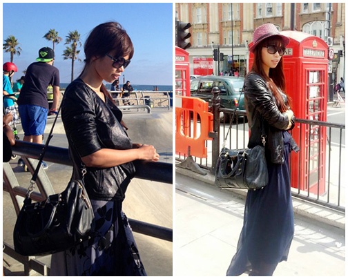 | Áo jacket da khỏe khoắn, sành điệu được cô ưa chuộng. |