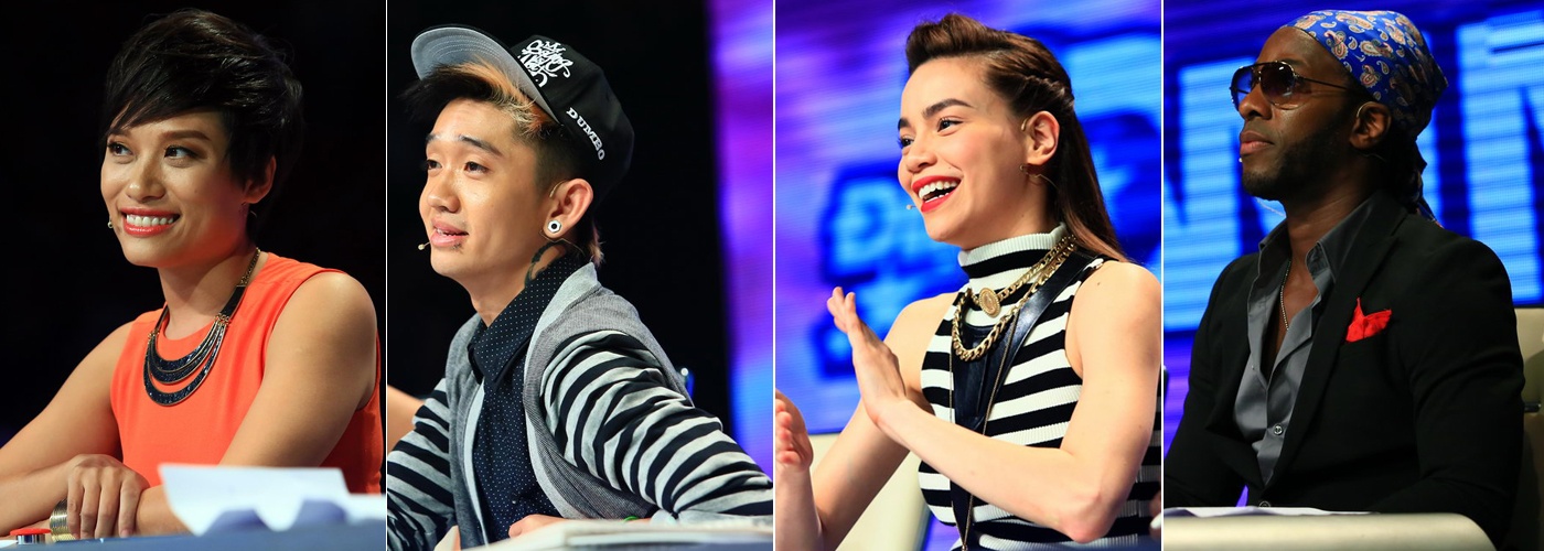 | Bộ tứ giám khảo ở đêm thi tối qua. |
